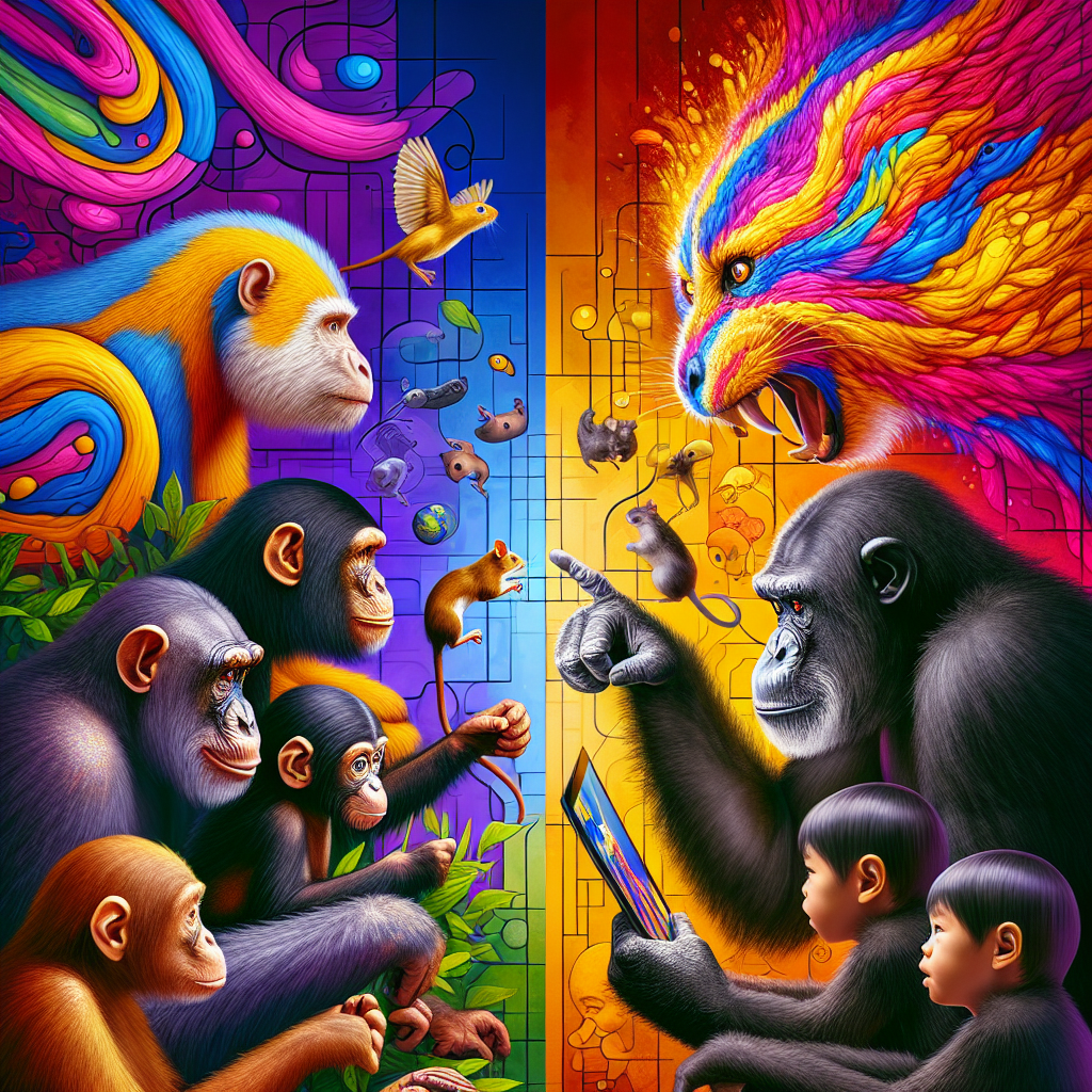 **A new study** published in PLOS Biology by Vanessa Wilson and colleagues explores the cognitive similarities between *great apes* and *humans* by observing how both species track events visually. When humans watch events like a cat chasing a mouse, they alternate looking at the cat (agent) and the mouse (patient), forming an agent-patient relationship. This is a key cognitive function linked to the evolution of human language. Researchers showed 84 video clips to 14 humans, five chimpanzees, two gorillas, and two orangutans, and tracked their eye movements. Similarly, they tested 29 six-month-old infants. **Findings reveal** that both apes and adult humans focus primarily on the agents and patients within these clips, with apes also showing interest in the background, unlike adult humans who focus directly on the key players. Intriguingly, infants did not demonstrate this pattern, focusing more on the background. This suggests that the cognitive ability to order events into agent-patient relationships evolved before language and is shared with great apes. These cognitive processes likely form a spectrum across species, hinting at evolutionary links in language development. The study underscores the need for further research to understand why, despite shared cognitive abilities, apes do not communicate like humans.